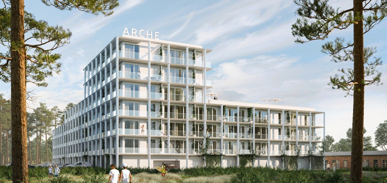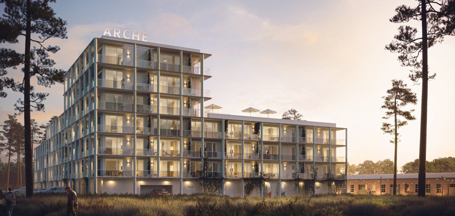 Budova Arche Plane Factory Mielno je navržena v moderním stylu, který odkazuje na historická sanatoria v Mielně. Architekti se řídili funkčností oblíbenou ve 30. letech 20. století a zdůraznili charakter místa, který byl reakcí na tehdejší architekturu letovisek. Návrh interiéru byl inspirován pláží u Baltu, která je proslulá jako jedna z nejkrásnějších v Evropě, jíž dominuje zlatavý písek třpytící se na slunci, protkaný větvemi starých stromů. V bytech naši architekti použili pastelové zemité barvy a celek byl vybaven prvky odkazujícími na historický charakter bývalé letecké továrny.