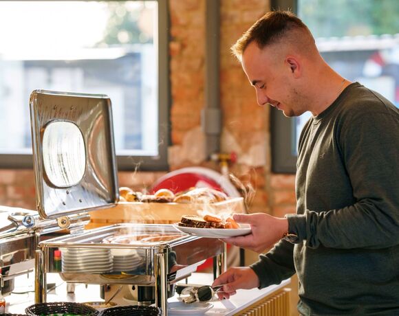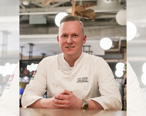 Za kuchnię w Hali Odlotów odpowiada Szef Kuchni Krzystof Banaszewski, który stawia na świeże regionalne produkty.