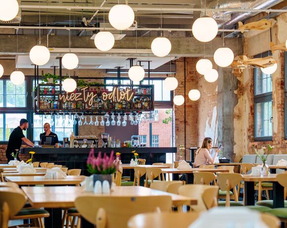 ale również wyjątkowe wnętrze. Hala Odlotów to miejsce, w którym historia łączy się z nowoczesnością. Industrialny charakter przestrzeni nadaje magii temu miejscu, która sprzyja spędzaniu czasu z bliskimi lub celebracji wyjątkowych chwil.